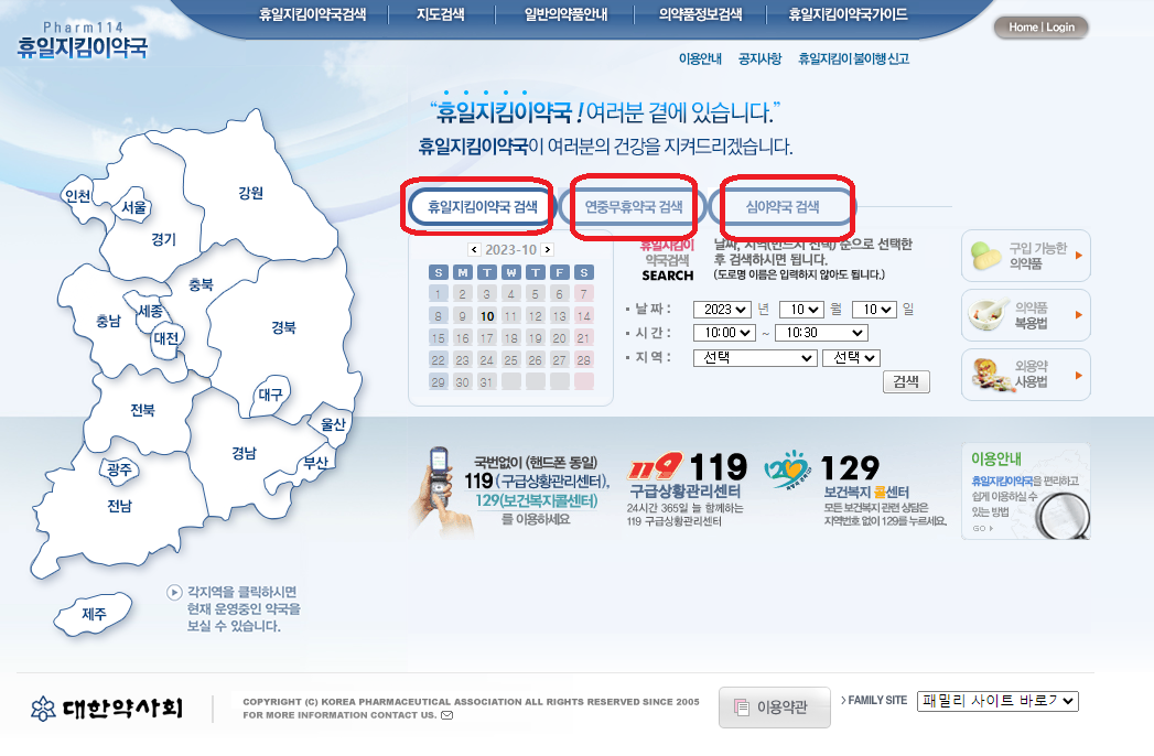 공휴일 및 야간 운영 약국 찾는 방법