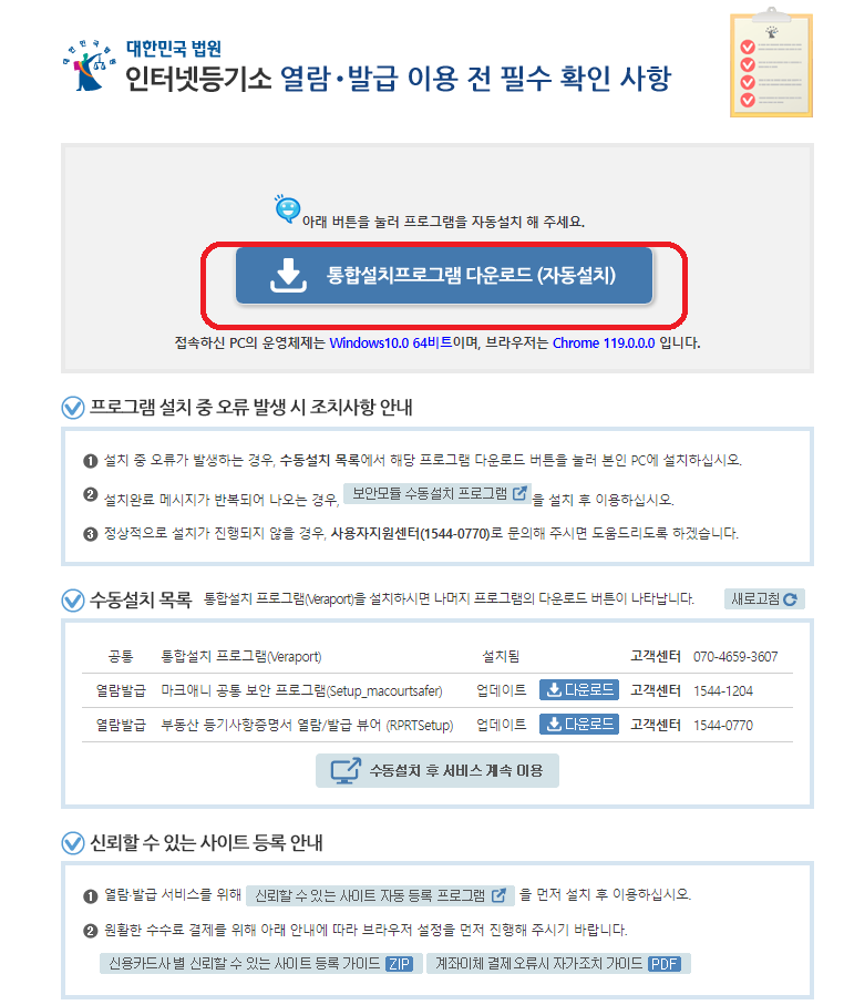 1. 위의 버튼을 클릭해 '인터넷 등기소'로 이동합니다.