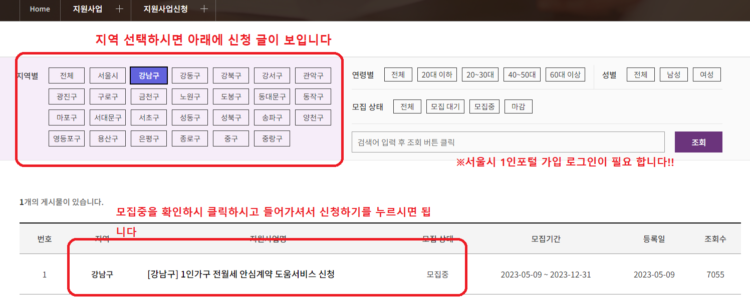 ● 서울 1인가구 포털을 통해 온라인 신청 가능합니다.(서울 1인 가구 포털로 신청 시 회원가입 및 로그인이 필요합니다.)