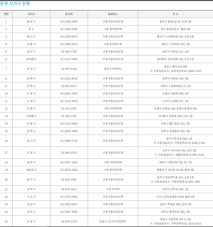 1. 전월세 계약상담 : 생애 최초계약자, 정보에 취약한 중장년 어르신 등 1인가구 상담을 통해 계약 중 피해예방 등 지원(주택임대차 계약 유의사항, 등기부등본 점검, 건축물대장 확인 등 서비스 제공)