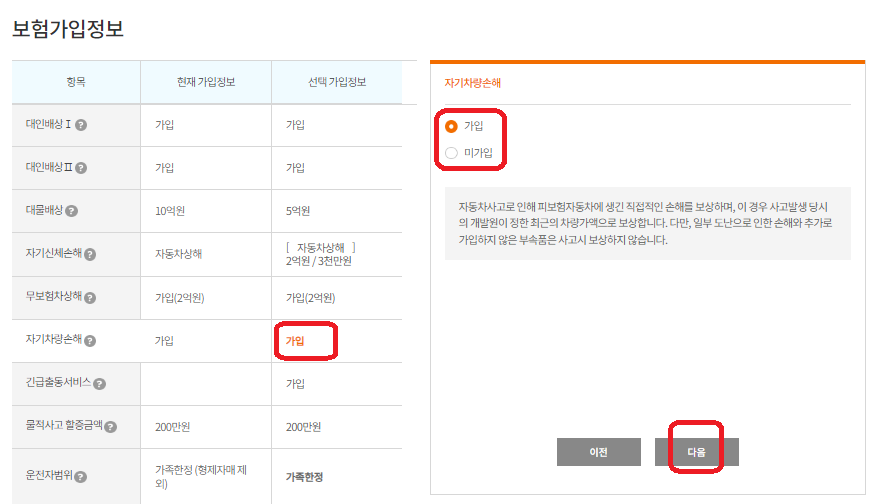 ●자기신체사고, 자동차 상해: 피보험자가 죽거나 다친 경우에 보상합니다. 설계사님들에게 물어보아도 자동차상해를 추천하셔서 자기신체사고 보장보다는 2~3만원정도 치이나지만 선택했습니다.