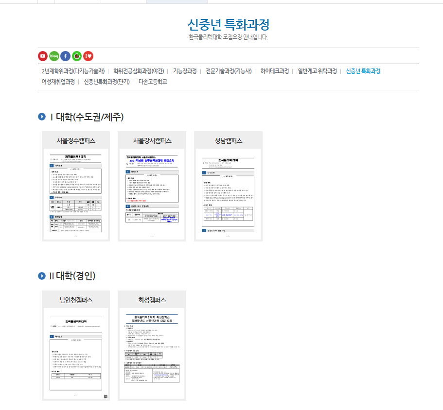 2. 클릭하고 들어가면 캠퍼스 별로 입시요강이 보입니다. 이중 자신이 원하는 캠퍼스를 선택합니다.