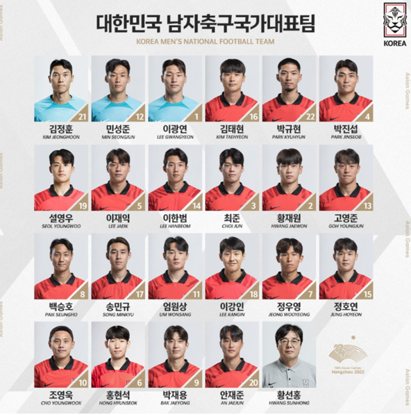 이상으로 항저우 아시안 게임 남자 축구 대표팀 경기 일정과 대표팀 명단을 알아보았습니다. 이번에도 금메달 가즈아~~~ 대. 한. 민. 국~~~~!!!