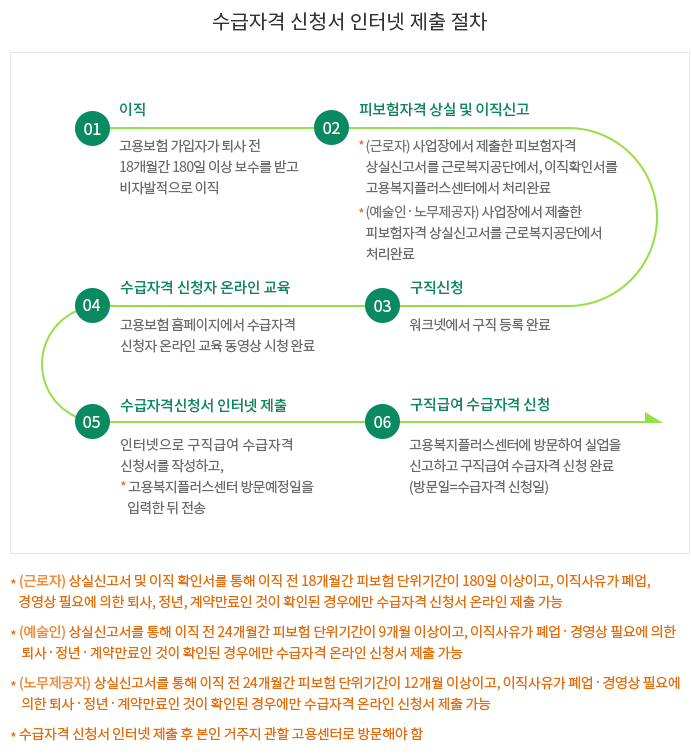-현재 실직 전 최소 6개월(근로일 기준 180일) 이상 고용보험에 가입 시 신청가능