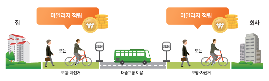 ** 만 19세 이상의 기초생활수급자 및 차상위계층은 주민센터에서 증빙서류를 발급받아 애플리케이션의 내 정보에 등록하여야 마일리지 적립을 더 받을 수 있습니다.