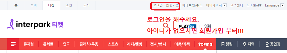 2. 페이지 위에 로그인을 해주세요(회원가입이 되어 있지 않으시면 회원가입부터 하셔야 합니다.)