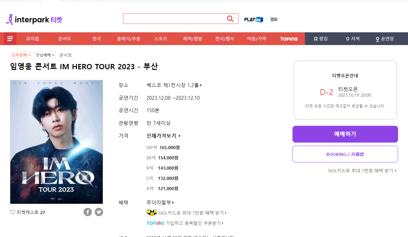 2023년 임영웅 부산콘서트 : 2023년 10월 19일(목) 오후 8시