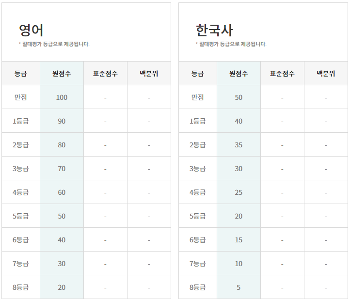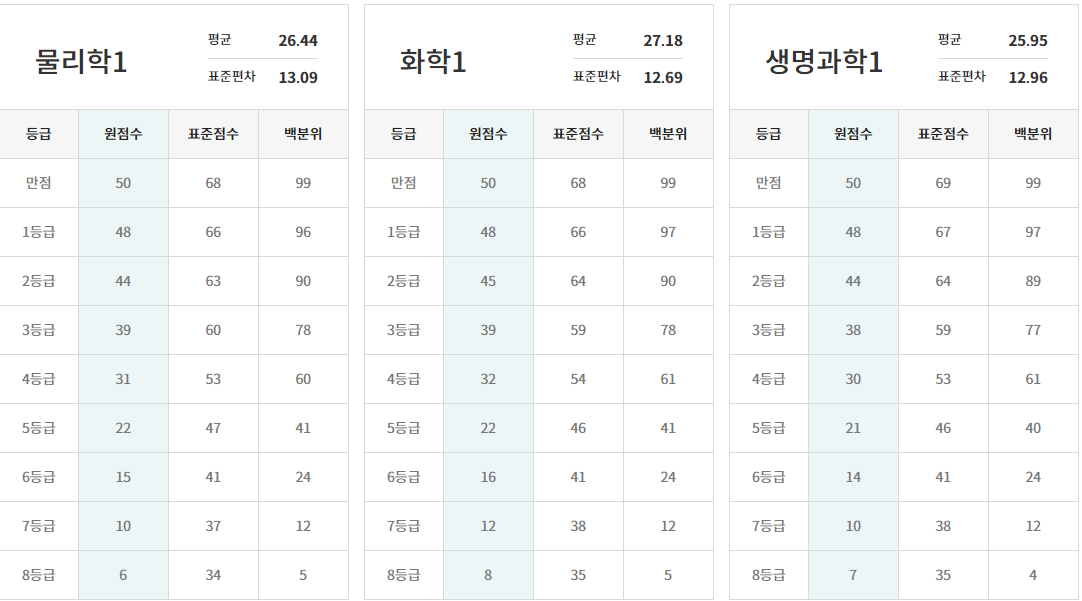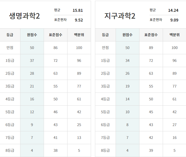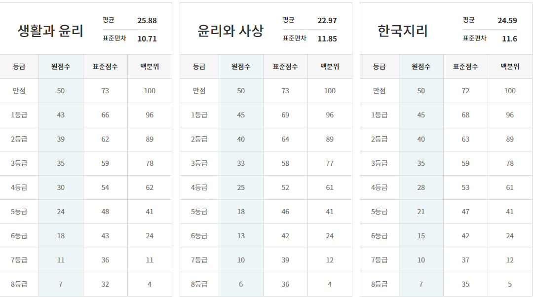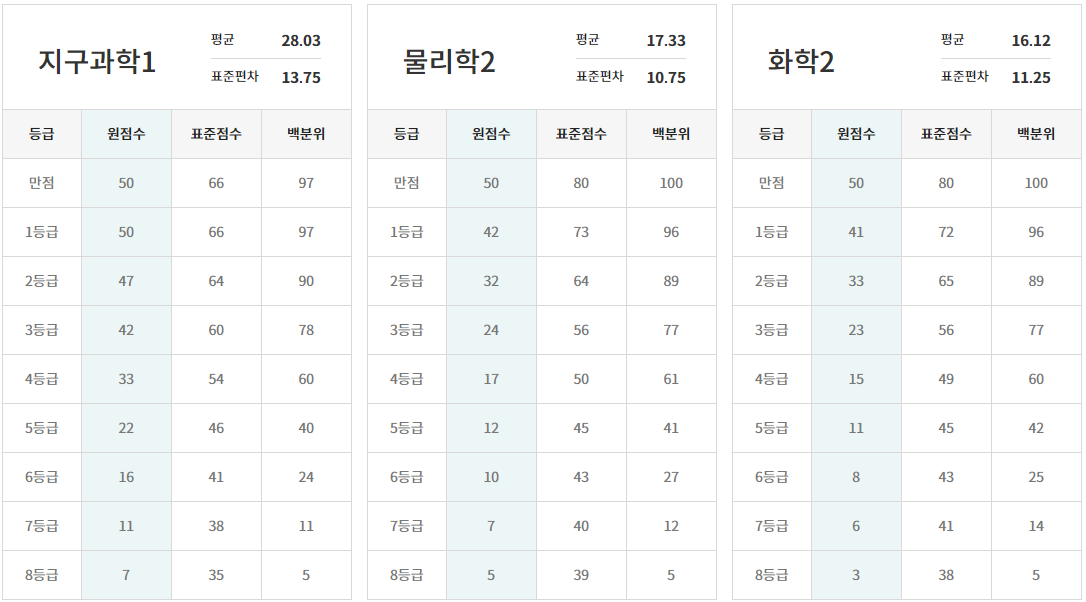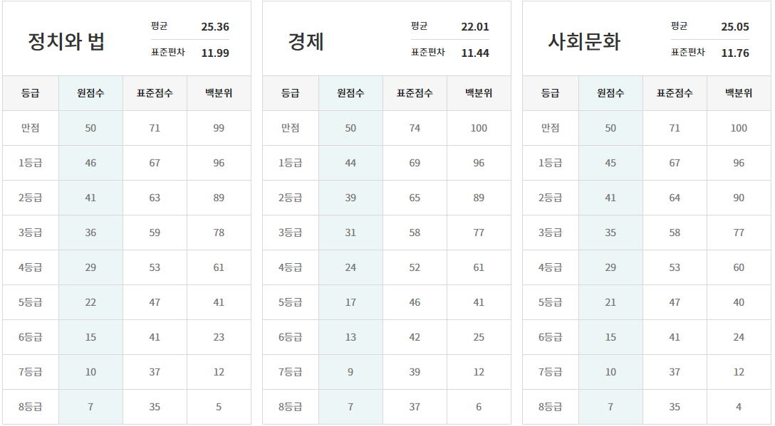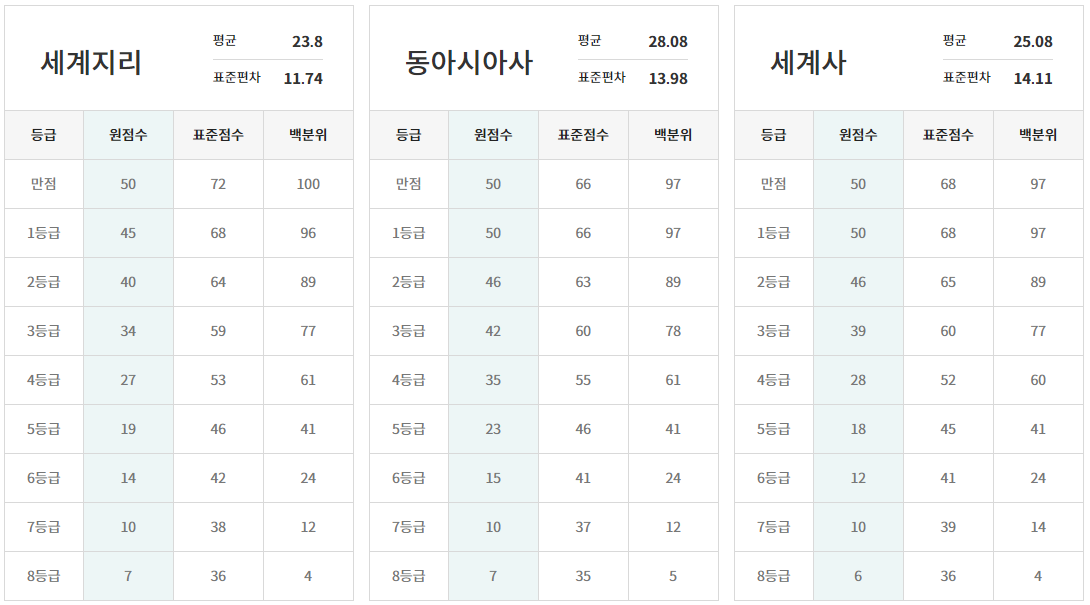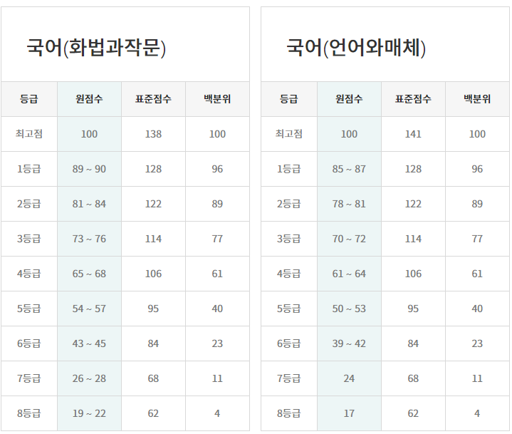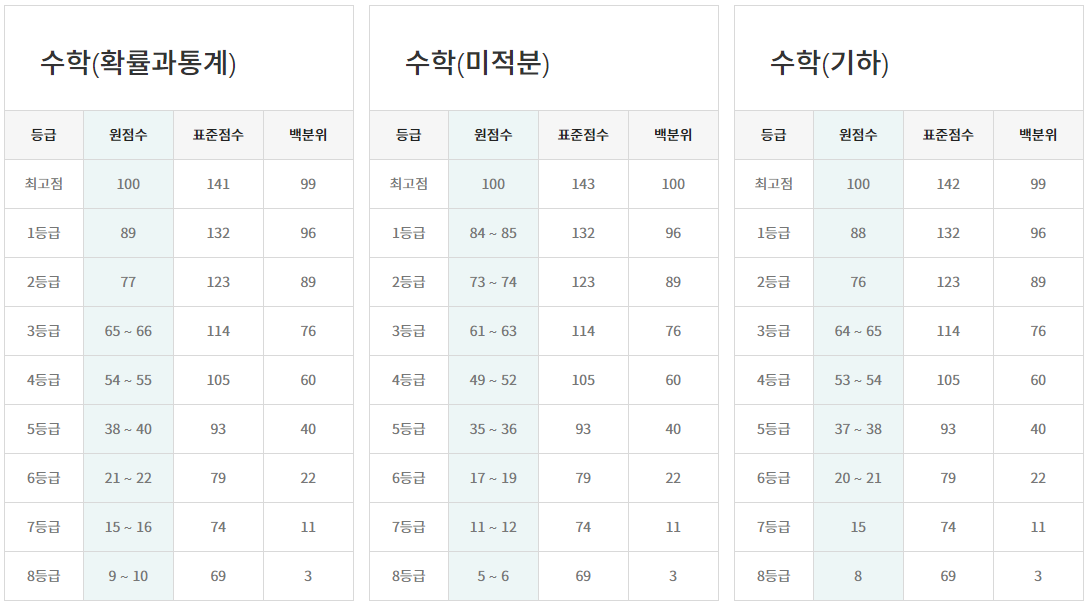 ※ 메가스터디와 EBS의 등급 컷과 비교해 보세요.