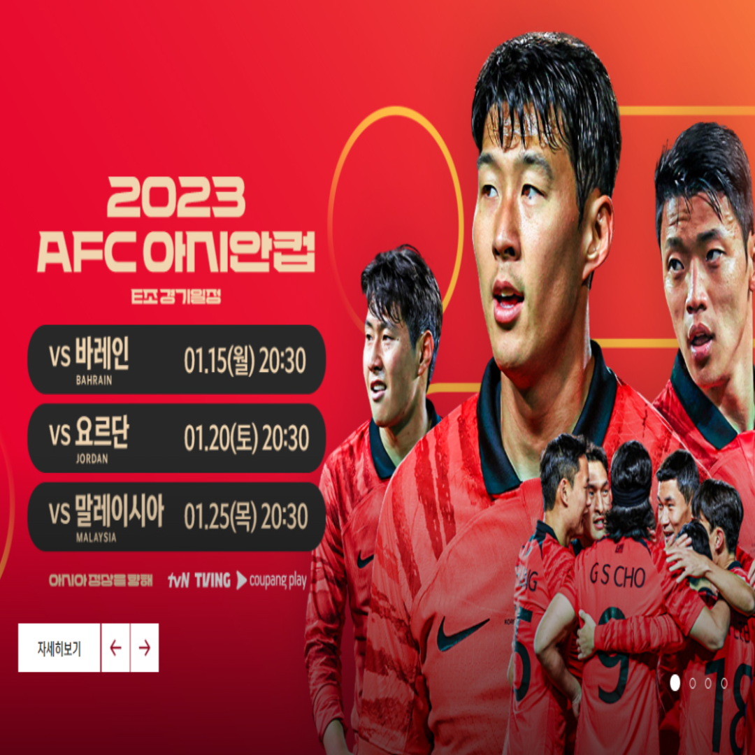 2023 AFC 아시안컵 경기가 2024년 1월 12일 예선 경기를 시작으로 개최됩니다. 클린스만 감독이 이끄는 대한민국 남자 축구 대표팀은 말레이시아, 바레인, 요르단과 함께 예선 E조에 편성되어 있습니다. 이번 아시안컵은 2026 북중미 월드컵의 아시아 예선을 겸하고 있어 어느 때보다 중요합니다. 손흥민, 이강인, 김민재, 황희찬 등 멋진 대한민국 남자 축구 국가 대표팀의 경기일정 및 조편성, 그리고 온라인에서 무료로 실시간 중계 시청하는 방법을 알려드릴 테니 도움 되시면 좋겠습니다.